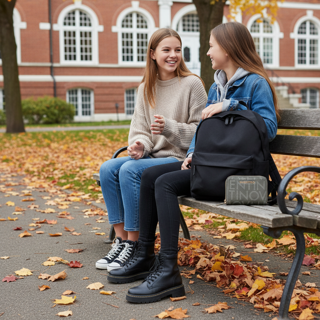 Monedero de mujer Valentino con estilo casual, compacto y práctico para uso diario. Interior bien organizado con ranuras para tarjetas, compartimento para billetes y un bolsillo para monedas. Diseño sobrio y elegante, con detalles distintivos de la marca que añaden un toque de lujo sin perder versatilidad.